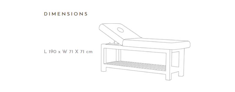 The backrest can be inclined during facial treatments and the reclining mechanism is made from corrosion-resistant stainless steel and nylon. There are wooden struts at the bottom for storing spa related equipment & accessories and have sufficient weight taking capacity.